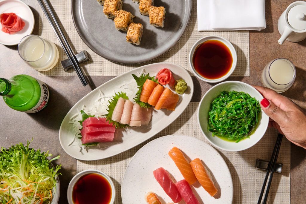 - Nigiri and Sashimi: seasonal white fish, maguro tuna, sake salmon, hamachi yellowtail, kampachi amberjack, unagi freshwater eel, hotate scallop, ebi shrimp, tako octopus, Ikura salmon roe, otoro fatty tuna and cutoro medium fatty tuna