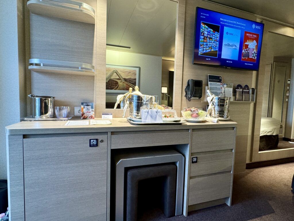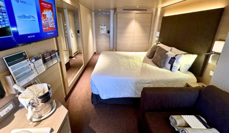We had stayed in a similar cabin on MSC Seascape a few years prior, and had recently stayed in the Yacht Club on MSC Seashore, so we were interested to see how the staterooms on this newest ship in the fleet compared.